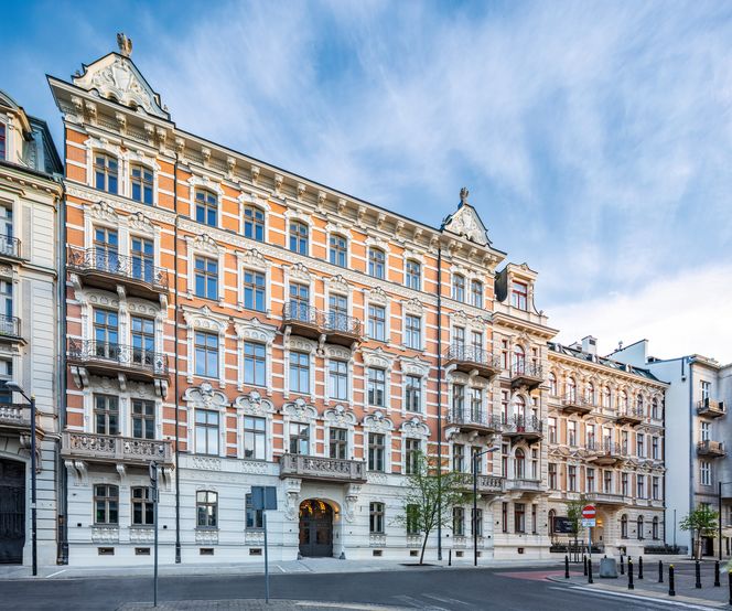 Two luxurious tenements were built in Foksal St. in the center of Warsaw at the end of the 19th c. Each consisted of the front house connected by side service wings with the back building, also containing apartments, and a narrow courtyard in the middle. The houses had a palace-like décor, with marble stairs, stucco decorations and wall paintings, all in the then-popular northern neo-Renaissance style. In the 1930s, an unfortunate attempt to “modernize” the façade of one of the houses by removal of eclectic decorations changed its character; war destructions and later neglect in the communist times brought both houses to ruin until a demolition was planned twenty years ago. Fortunately new owner had them painstakingly renovated. Only one small photograph was found of the original façade of the house at no 13; the architects worked for years designing new elements, which would follow the eclectic aesthetics characteristic of the time the houses were built. The works were conducted by artists and craftsmen: sculptors, stuccoists and smiths. All original elements that could be salvaged were later used; e.g. tiled stoves now decorate common staircases.