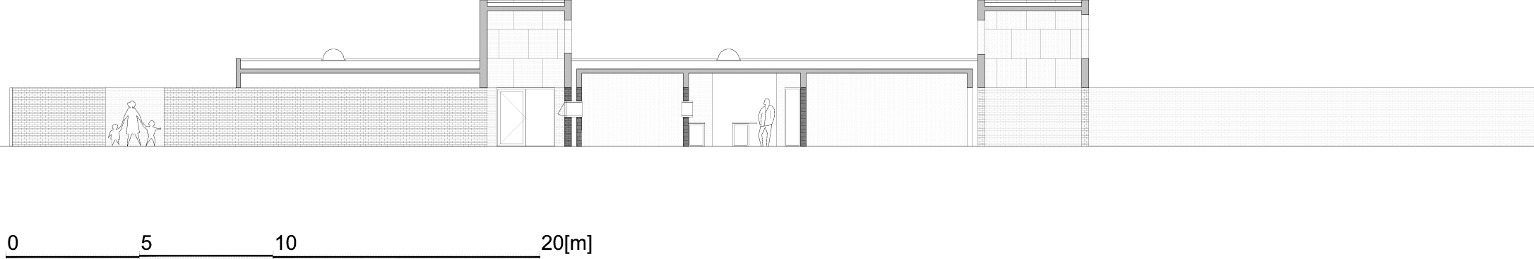 They create an en-suite impression, thus lessening the longitudinal feel of the building. Both the house and the surrounding wall are built of brick; the enclosure is interrupted by wooden trellises. Everything above the enclosure is made of concrete, and the most spectacular elements are two tower-like structures above the main entrances in the east and west end of the house. In future, they can be glazed to form additional rooms or winter gardens.