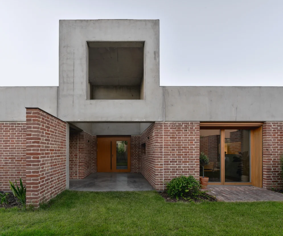 Wrażenie jednorodności projektowanego obiektu wzmacniają również decyzje materiałowe. Nie tylko dom, lecz także okalające go ogrodzenie do wysokości dwustu dwudziestu centymetrów wykonano z ceramiki. Wnętrza otynkowano, dając tło meblom i codziennemu życiu, natomiast ściany zewnętrzne pozostawiono ceglane, nawiązując w ten sposób do istniejącego tu wcześniej budynku (z pochodzącej z niego rozbiórkowej cegły wykonano tarasy zewnętrzne).