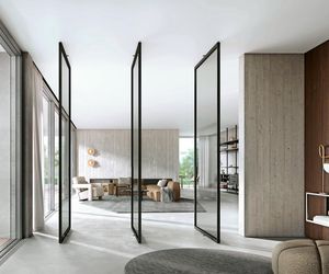 Ogromne drzwi pivotowe obracają się wokół osi obrotu znajdującej się w połowie skrzydła