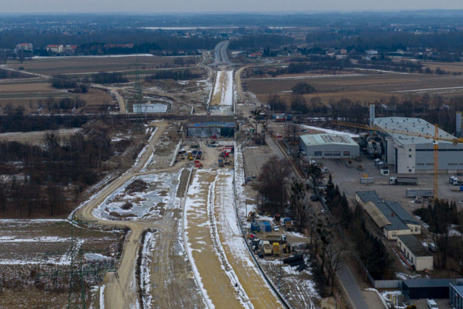 Obwodnica Oświęcimia w budowie - DK44, na zdjęciach widać miejsce w którym pod torami zostanie przeciśnięta betonowa konstrukcja tunelu