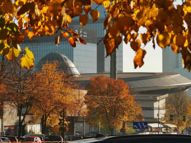 Aleja Korfantego w Katowicach i Spodek, początek lat 80. XX wieku. Fot. NAC