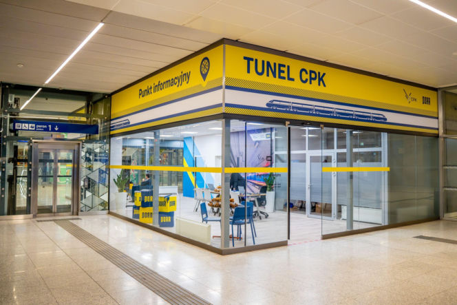 Punkt informacyjny dotyczący budowy tunelu CPK