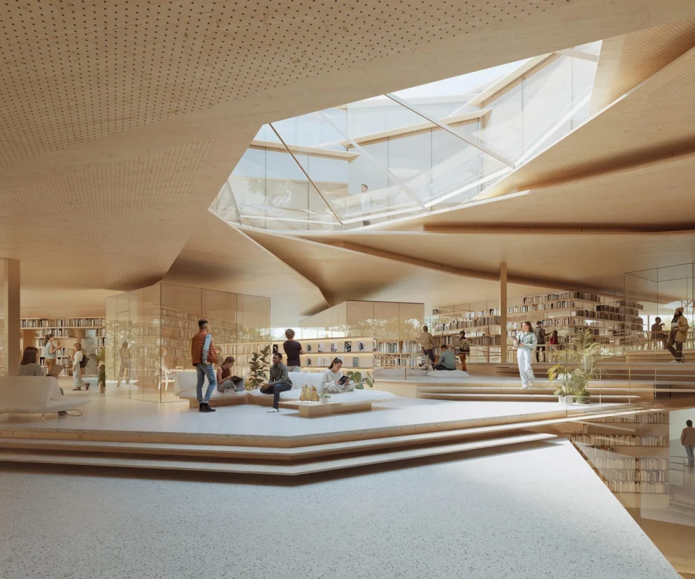 Sędziowie wskazują także, że projektowany układ konstrukcyjny nie tworzy spójnego, statycznie działającego systemu. Elementy nadziemia – zwłaszcza część biblioteczna – nie mają ciągłości z konstrukcją podziemną, co oznacza brak realnych dróg przenoszenia obciążeń. W miejscu, gdzie powinny znajdować się masywne elementy pośredniczące (tzw. struktura transferowa), projekt pokazuje jedynie cienkie, symboliczne warstwy, które nie mogłyby pełnić rzeczywistej funkcji nośnej.