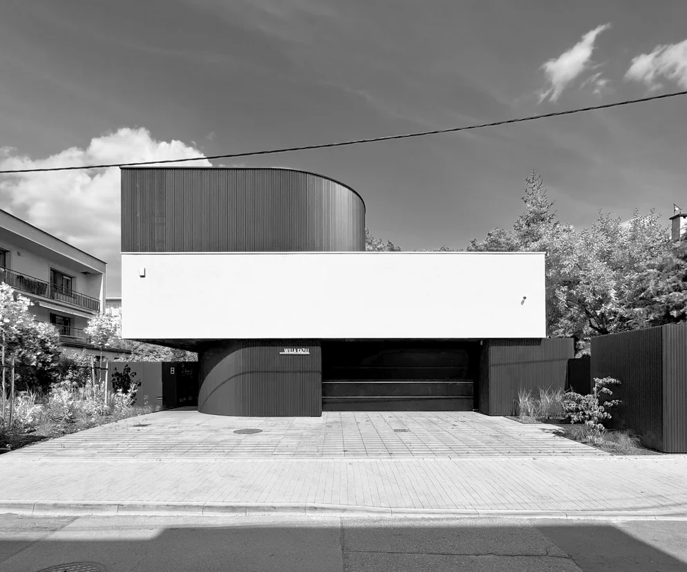 Kluczowym założeniem projektu było stworzenie takiego układu budynku, aby nie było konieczności zastosowania ogrodzenia od strony ulicy. Daje to oddech przed budynkiem w kontekście gęstej zabudowy, umożliwia prezentację trójpodziału elewacji oraz usprawnia komunikację mieszkańcom na bardzo wąskiej ulicy. Obłe narożniki budynku wprowadzają lekkość do formy, a łuk elewacji na parterze skierowuje gości w stronę głównego wejścia, które znajduje się w podcieniu, tworząc zapraszający i funkcjonalny akcent.