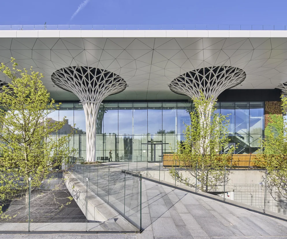 Ważną rolę w projekcie odgrywa zielona infrastruktura. Zieleń wysoka i niska została wkomponowana w przestrzenie publiczne, dachy oraz perony, zwiększając retencję wód opadowych, wspierając bioróżnorodność i poprawiając mikroklimat. Zastosowano również rozwiązania oparte na naturze – jak zielone ściany czy systemy małej retencji – które zmniejszają efekt miejskiej wyspy ciepła i wpływają korzystnie na jakość powietrza. Projekt kładzie nacisk na komfort użytkownika.