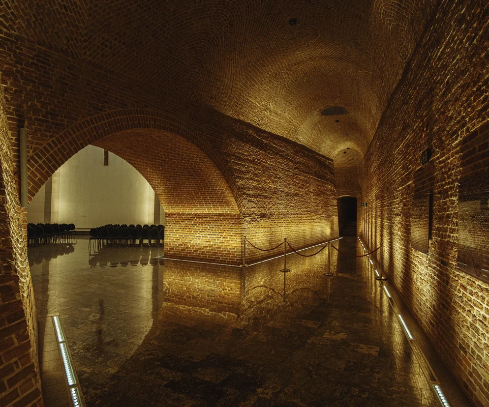 Realizacja Kaplicy Golgoty Wschodu w Bastionie Św. Barbary stanowi unikatowy przykład stworzenia nowej przestrzeni uzbrojonej we współczesną technologię, z poszanowaniem historycznego dziedzictwa i uwypukleniem jego niezaprzeczalnych walorów. W kreowaniu przestrzeni wewnętrznej i jej atmosfery świadomie używano światła; tego naturalnego „dramatycznie” doświetlającego główną halę kaplicy przez trójścienny szklany świetlik i docierającego do kazamatów przez tubusy wentylacyjne oraz kreowanego światła sztucznego. Oprawy ulokowane w szczelinach na styku kamiennych posadzek oraz ceglanych i wapiennych ścian oświetlają je od dołu, natomiast nieliczne kierunkowe oprawy sufitowe dopełniają świetlną dramaturgię wnętrza kaplicy. Prace projektowo-budowlane ukończono po niedawno. Można by powiedzieć, że to długo w przypadku niespełna 2000 metrowej powierzchni, lecz w miejscu, gdzie czas odmierza się stuleciami, tych kilkanaście lat to mgnienie oka....