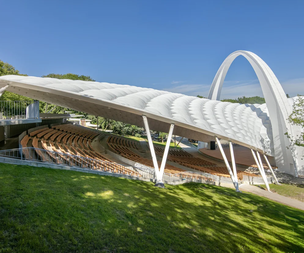 Cała technologia sceniczna – oświetlenie, nagłośnienie i mechanika – została całkowicie zintegrowana ze strukturą zadaszenia. Pozwoliło to uzyskać czystą, organiczną formę muszli koncertowej o bezprecedensowych możliwościach technicznych. Wieczorem, dzięki dynamicznej iluminacji zintegrowanej z dźwiękiem, dach zamienia się w pulsujący lampion w sercu parku