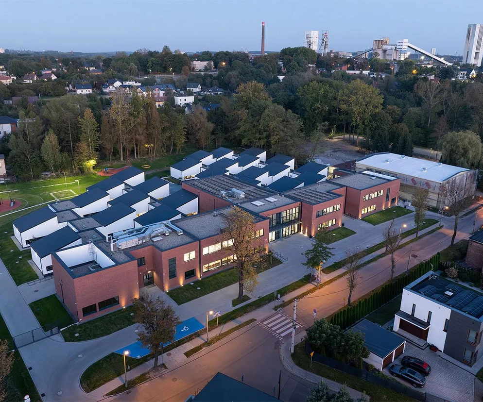 Rewitalizacja z misją społeczną: W dzielnicy Bielszowice w Rudzie Śląskiej powstała szkoła, która nie tylko rozwiązuje trudności techniczne związane z eksploatacją górniczą – to projekt, który tchnął nowe życie w zdegradowany fragment miasta. Tam, gdzie przez lata dominowało zniszczenie, osiadanie gruntu i obawy o bezpieczeństwo, dziś pulsuje codzienna aktywność, edukacja i wspólnota.