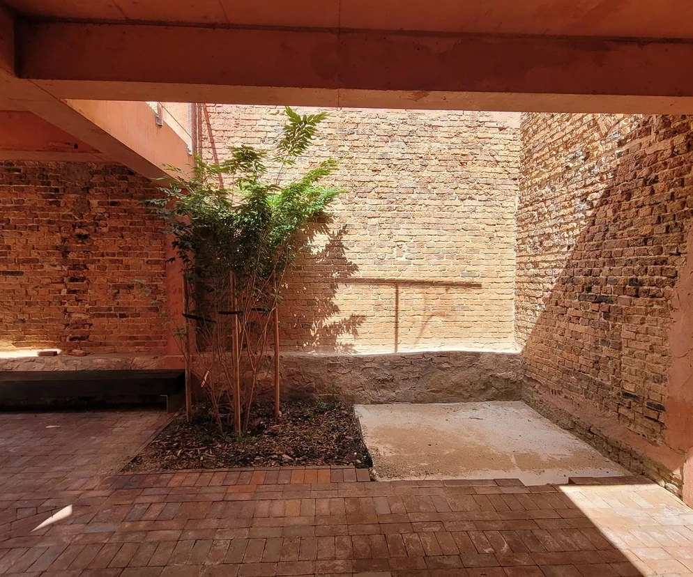 Odrębnym tematem jest stworzenie w dziedzińcu przestrzeni wspólnej dla mieszkańców – świetlicy w adaptowanej ceglanej oficynie oraz wielopoziomowego ogrodu w miejscu dwóch pozostałych oficyn. Istniejące ceglane mury zostały docieplone od wewnątrz oraz uzupełnione barwionym betonem, który z czasem pokryje się zaprojektowaną zielenią – krzewami i pnączami. Udało się nam zachować istniejący bluszcz, który porastał oficynę od zachodu – cały czas stanowi on ozdobę połączonych ze sobą podwórek kwartału, którego częścią są nasze kamienice. Powstał piękny ogród dostępny dla mieszkańców KTBS, ale będący również upiększeniem wszystkich sąsiadujących podwórek i sąsiednich budynków.