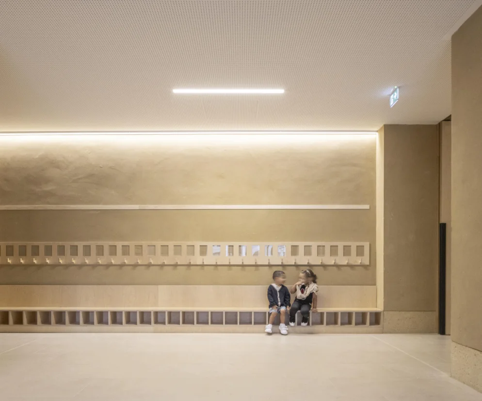 Szkołę i przedszkole dla 540 dzieci wybudowano na dawnych terenach uniwersyteckich z lokalnego drewna i materiałów pochodzących z rozbiórki starszych budynków, w tym 4000 ton betonu rozbiórkowego. Wzniesiony z użyciem innowacyjnych autorskich technologii recyklingu materiałów (m.in. piasku) udostępnionych do ponownego użycia przy innych realizacjach. Budynek jest pasywny, funkcjonuje w oparciu o odnawialne źródła energii. We wnętrzach postawiono na naturalne materiały i rośliny, do spędzania czasu przewidziano dziedzińce. Inwestorem jest miasto.