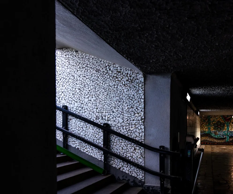 Rok urodzenia: 1976. Generalny remont: 2017. Ojciec: Tadeusz Drążkiewicz. Materiał: tłuczony porcelit i drobne płytki ceramiczne; na wielu elementach znajdziemy sygnaturę fabryki porcelany Bogucice. Adres: podziemia w Sosnowcu w woj. śląskim. Oto mozaika z czasów PRL która choć cudem ocalała po dewastacji z lat 90. i dwutysięcznych i która została pieczołowicie odrestaurowana. Choć dawno nie ma kopalni, do której wiodło przejście.