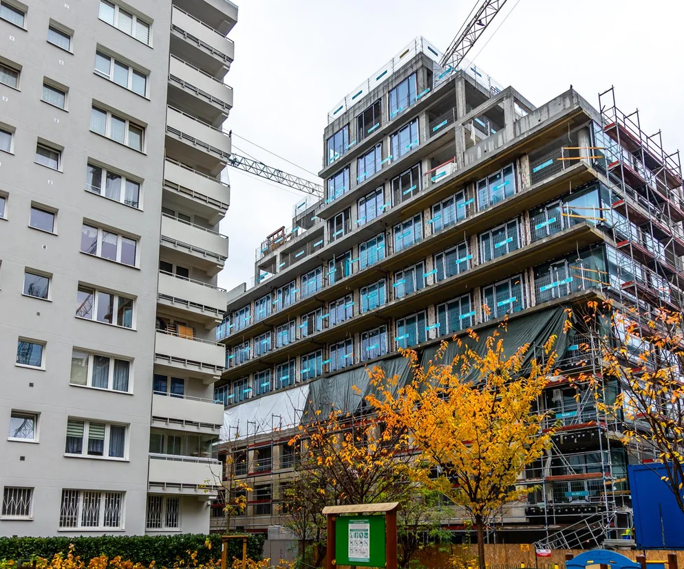 Nim ruszyła budowa, minęła dekada. Pierwsze prace ruszyły w końcu w 2023 r. Wykonawcą początkowo była firma Capital Investment, później zadanie to przejął Mal-Bud-1. Sąsiedzi – mieszkańcy sąsiednich bloków z lat 60., projektu kolejnego ucznia Lacherta, arch. Tadeusza Mrówczyńskiego – od początku protestowali przeciw inwestycji. Jedni nie chcieli zacienienia swoich okien, innym żal było parkingu i drzew, kolejni obawiali się o to, jak budowa wpłynie na stabilność wielkiej płyty, w której mieszkają. Były też argumenty odwołujące się do historii miejsca.
