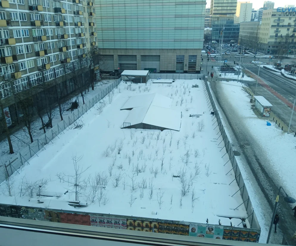 Od 7 lat w miejscu Emilii stoi ogrodzenie. Za ogrodzeniem - pomnik podejścia Warszawy do dziedzictwa powojennego modernizmu
