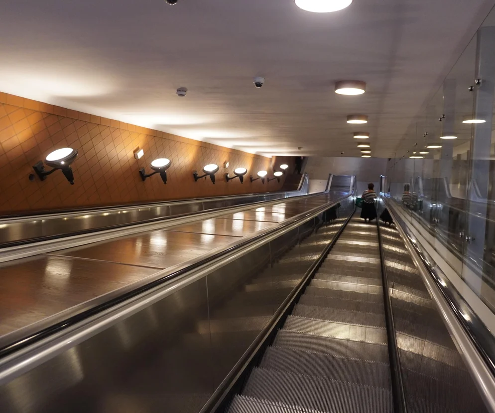 Najdłuższe schody ruchome w Polsce: metro Centrum Nauki Kopernik, ok. 40 m