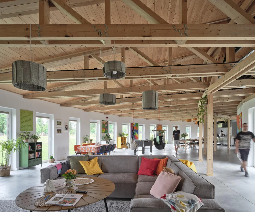 Drewniane elewacje pełnią funkcję bariery akustycznej, a pergole i roślinność wprowadzają przyjazny, parkowy charakter. Całość wyróżnia się prostą, czytelną formą i użyciem naturalnych materiałów, podkreślających lokalny wymiar projektu. Przystań Widna 2A jest przykładem współczesnej architektury społecznej – łączącej funkcjonalność, dostępność i estetykę w służbie wspólnoty.
