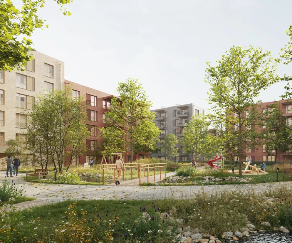 Całość koncepcji podporządkowano naturze – drzewom, wodzie i lokalnym ekosystemom – wykorzystując m.in. błękitno-zieloną infrastrukturę, retencję wody, rodzime gatunki roślin i mikro-lasy. Za projekt architektury krajobrazu odpowiada arch. krajobrazu Joanna Rayss.