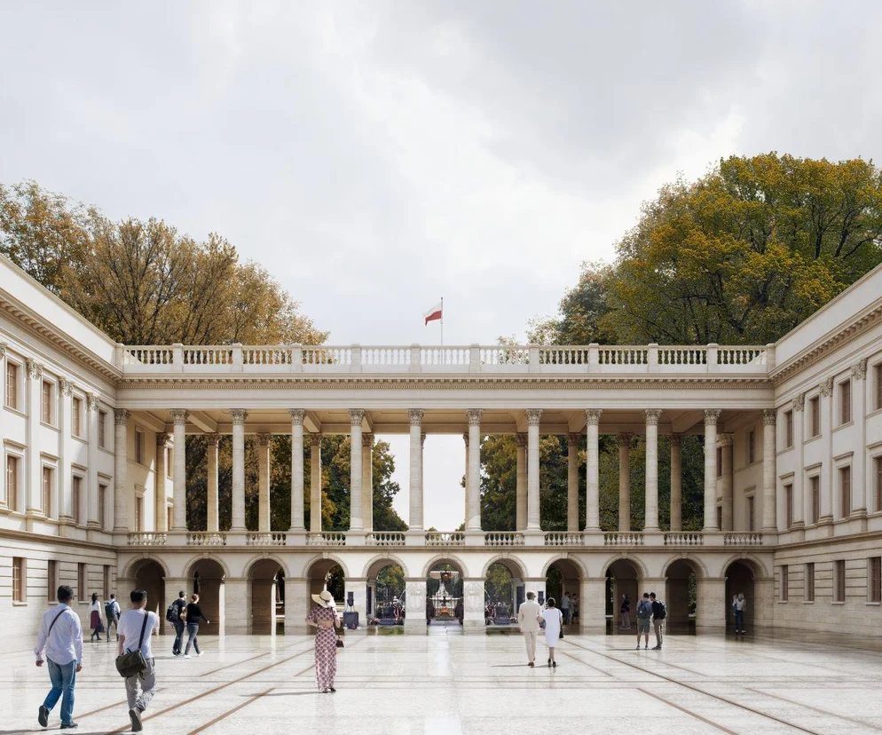 Przypomnijmy: Pałac Saski w Warszawie to nieistniejący klasycystyczny pałac znajdujący się niegdyś na placu marsz. Józefa Piłsudskiego, wysadzony przez Niemców w 1944 r. Jedyną ocalałą częścią budynku jest fragment kolumnady, w którym mieści się Grób Nieznanego Żołnierza. Plan odbudowy Pałacu wraz z sąsiadującymi, także zniszczonymi budynkami (Pałacem Brühla oraz trzema kamienicami przy ulicy Królewskiej) ogłoszono w 2018, zaś uchwałę w tej kwestii przyjęto w 2021 r.