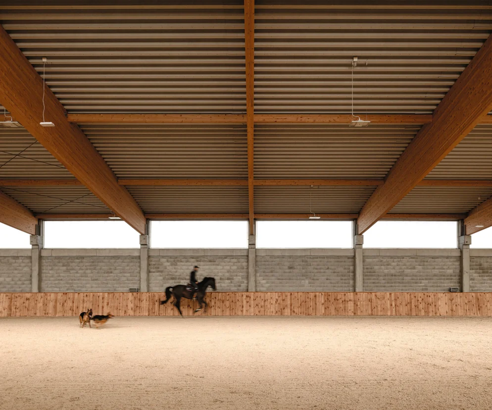 Dom dla Koni projektu pracowni wiercinski-studio to budynek, który redefiniuje pojęcie obiektu gospodarczego. Choć jego podstawową funkcją jest zapewnienie przestrzeni dla koni, projekt wykracza daleko poza schemat typowej stajni czy hali jeździeckiej. Zlokalizowany w krajobrazie ziemi pałuckiej, wpisuje się w istniejącą zabudowę w sposób niemal organiczny – jego skala, forma i materiały pozostają w dialogu z otoczeniem.