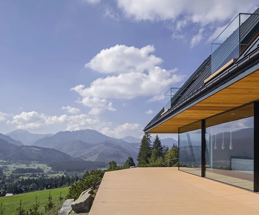 Widok na panoramę gór dzięki przesuwnej szklanej ścianie