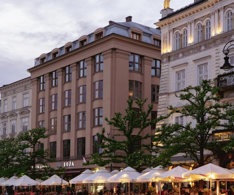 Działka przy Rynku Głównym 41 w Krakowie już od dekad była obiektem afer, plotek i teorii wszelakich, kiedy początkiem lat 30. z nowego gmachu zdjęto wreszcie rusztowania. Najpierw (jeszcze w 1913 roku) wyburzono tu trzy stare, średniowieczne kamienice z myślą o nowym hotelu. Przez lata działka stała pusta. Później podłużną parcelę rozciągającą się na ul. św. Jana kupiło austriackie Towarzystwo Ubezpieczeniowe na Życie "Feniks", a wykonanie projektu nowego luksusowego domu czynszowego zlecono krakowskiemu architektowi Adolfowi Szyszko-Bohuszowi. Tak rozchwytywanemu i tak ustawionemu, że przylgnęła do niego ubrana w komplement uszczypliwość: Adolf Wszystko-Bohusz.