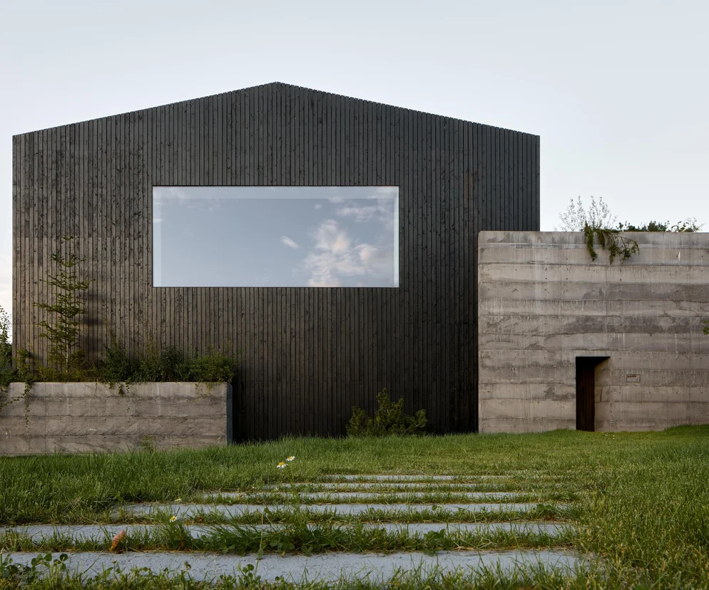 Główną ideą projektową było „otwarcie” budynku zarówno na sąsiednią łąkę, jak i na odległe widoki. Starannie rozmieszczone otwarcia w elewacjach nie tylko kadrują krajobraz, ale podkreślają też rolę samych okien, które w projekcie są pierwszoplanowym bohaterem. Jak podkreśla architekt Jakub Janošík: