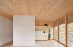 Naturalne światło odgrywa kluczową rolę w organizacji przestrzeni domu. Duży świetlik oświetla centralną część nadbudówki, akcentując wzajemne przenikanie się stref. Po otwarciu drzwi balkonowych, wnętrze domu przekształca się w przestrzeń otwartą na krajobraz. Przesuwne rolety, w które wyposażono przeszklenia od strony południowej, pozwalają na regulację nasłonecznienia, pełniąc tym samym funkcję pasywnej ochrony termicznej.