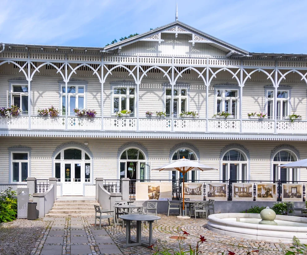 Architekci i inwestor postanowili też na podstawie historycznych zdjęć zrekonstruować nieistniejącą wieżyczkę i taras do kąpieli słonecznych. Restaurację i pokoje hotelowe wraz z zachowanymi ceramicznymi piecami zaprojektowano w ich pierwotnej lokalizacji. Jak wyszło?