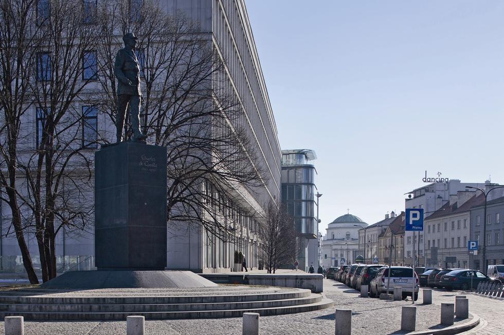 Budynek wraz z dawnym Domem Partii tworzy owalny plac miejski. Powstaje dzięki temu triada przestrzeni publicznych – od północy wyniesione przedpole: balkon nad Alejami Jerozolimskimi, dalej na południe plac prostokątny: dziedziniec Domu Partii i wreszcie nowo powstały plac pomiędzy ulicą Nowy Świat i Parkiem na Książęcem. Ta sekwencja trzech placów, na osi północ–południe powiązanych podcieniami dawnego Domu Partii, przywraca Warszawie ten kwartał miejski zarówno w warstwie symbolicznej, jak i funkcjonalnej oraz społecznej.