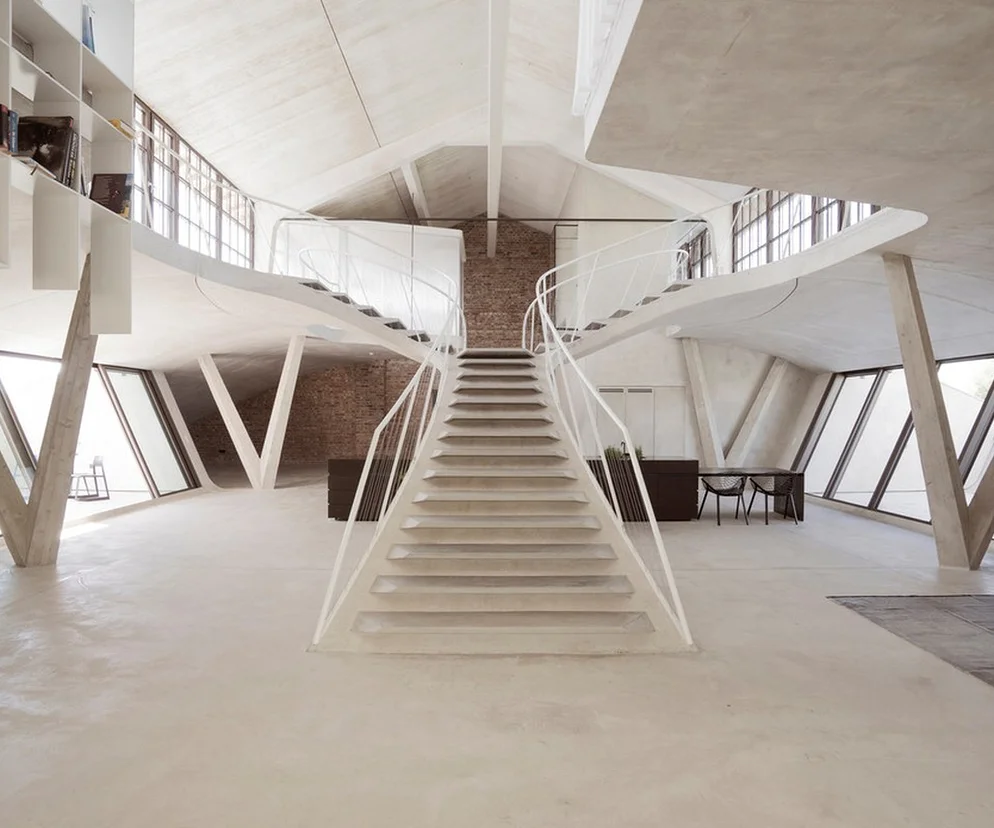 Część powierzchni hali przeznaczono pod luksusowe apartamenty i lofty. Jeden z najbardziej spektakularnych powstał według projektu biura Smartvoll Architekten ZT KG, wyłonionego w ramach międzynarodowego konkursu z 2013 roku. Charakterystycznym elementem przestrzeni są umieszczone centralnie rzeźbiarskie schody na planie krzyża, które płynnie przechodzą w przebiegające wzdłuż ścian galerie wsparte na pilotis. Na parterze zlokalizowano kuchnię, jadalnię, salon, garderobę i strefę domowego spa, natomiast powyżej zaprojektowano sypialnię i kolejną łazienkę. Z dolnego poziomu można wyjść na niewielki taras. Nowe elementy wnętrza zostały wykonane z woskowanego betonu w jasnym odcieniu, który kontrastuje z kolorem odsłoniętej cegły.