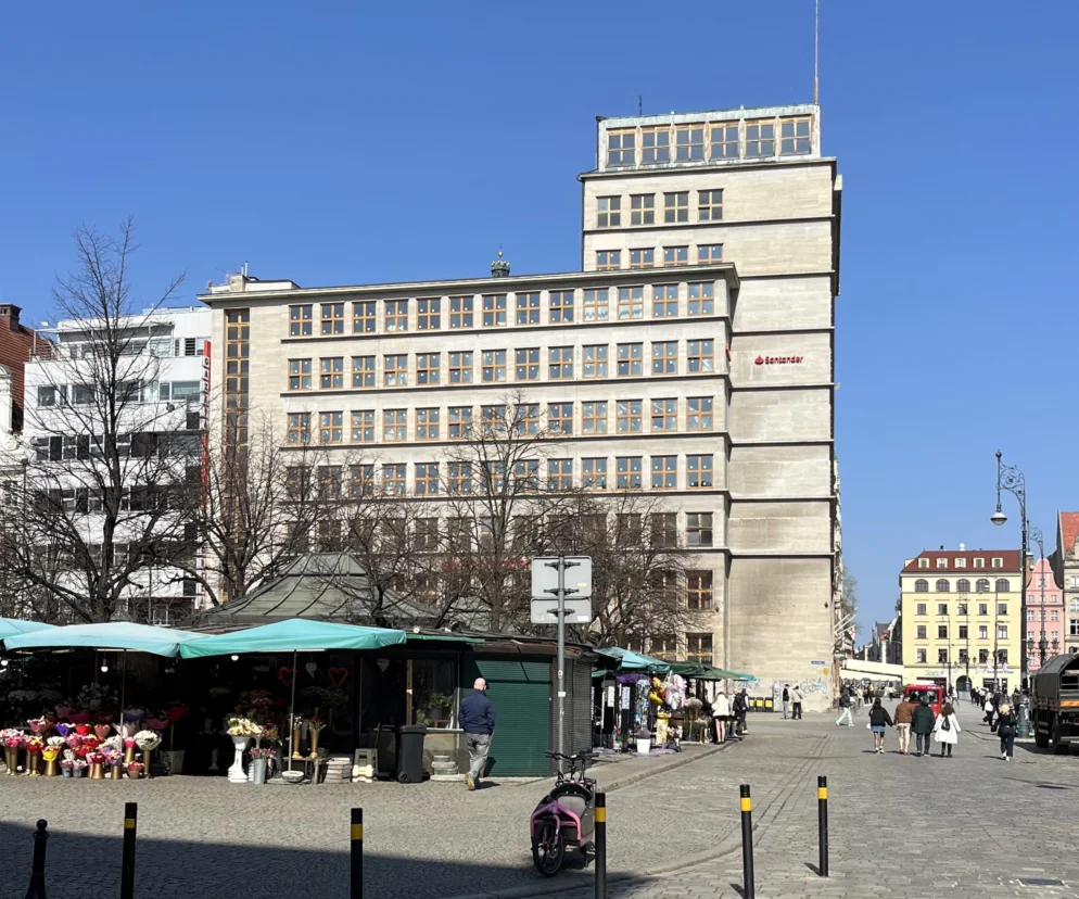 Żeby go zbudować, w latach 20. na Rynku wyburzono trzy kamienice. Ówczesny Wrocław miał być nowoczesny, miał przyciągać do centrum miasta bogaczy i ich biznes. Cóż mogło lepiej zasygnalizować te aspiracje niż wieżowce, symbole pieniądza i potęgi? Exegi monumentum, i tak dalej. Urzędy coraz przychylniej spoglądały na projekty wysokich biurowców (pod pewnymi względami być może nawet przychylniej niż obecnie). W konsekwencji, w tamtych czasach w historycznych centrach miast niebotyków powstawało więcej, nie tylko w Breslau czy na terenach ziem zachodnich, ale również w Polsce - np. w Krakowie na placu Szczepańskim. I tu też średnio pasowały.