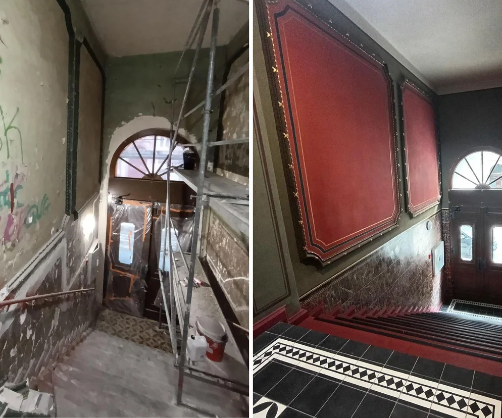 Prace obejmowały całą klatkę schodową, w tym posadzki, schody oraz elewacje. Szczególnym wyzwaniem była jednak sień – miejsce, w którym udało się zachować oryginalną dolną część ścian z tzw. marmoryzacją, a także część sztukaterii.