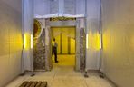 Wchodząc do wnętrza watykańskiej wystawy, wita nas wszechogarniająca żółć. Przestrzeń została oddzielona tiulowymi siatkami zabezpieczającymi. To zaskakuje – przecież tematem ekspozycji ma być proces renowacji tego właśnie miejsca. Dlaczego więc, zamiast eksponować jego niedoskonałości i fragmenty wymagające pracy, autorzy rozpraszają naszą uwagę żółtymi świetlówkami i zasłaniają to, co – jak mogłoby się wydawać – powinno być widoczne? I dlaczego w każdej sali znajduje się jakiś instrument muzyczny?