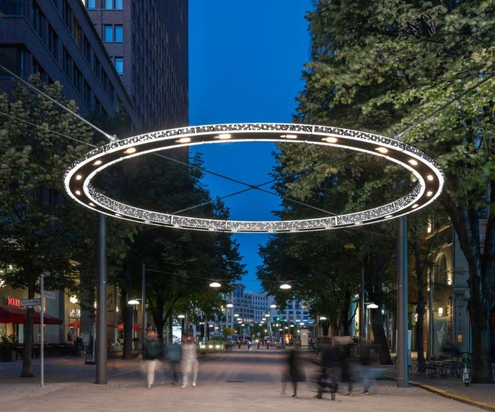 W ramach rewitalizacji Placu Poczdamskiego w Berlinie kluczową rolę odegrało oświetlenie, zaprojektowane w myśl „Berlin Lighting Concept”. Firma TRILUX przygotowała niestandardowe rozwiązania, podkreślające charakter nowej, pieszej strefy miejskiej. Najbardziej spektakularnym elementem jest ośmiometrowy pierścieniowy „żyrandol” – świetlna rzeźba unosząca się nad centralnym placem, zapewniająca zarówno funkcjonalne, jak i nastrojowe oświetlenie.