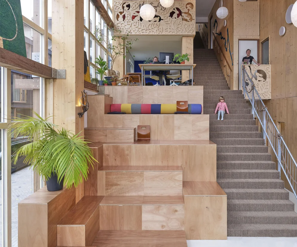Powstało dzięki temu około 800 m² powierzchni do użytku wspólnego, obejmującej m.in.: duże audytorium, salę wielofunkcyjną, pokój zabaw dla dzieci, studio muzyczne, różne przestrzenie coworkingowe, pokój do medytacji, szklarnię, taras na dachu oraz kilka wspólnych salonów i kuchni.