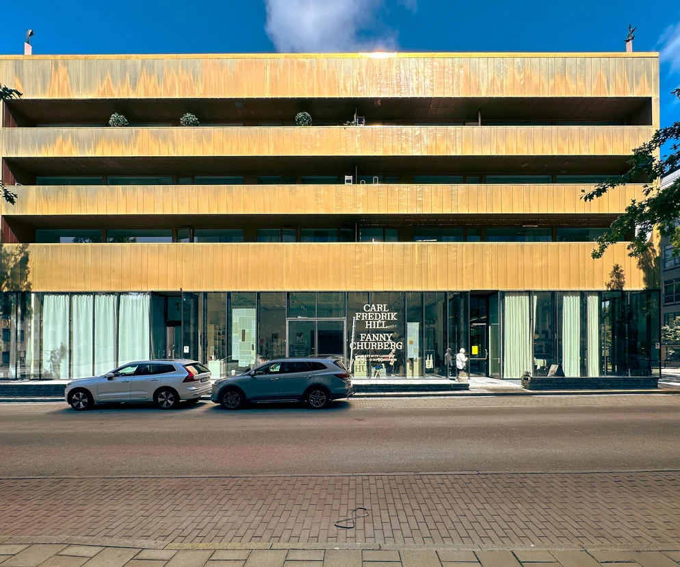 Złota fasada tego budynku objawiła mi się prawie u celu mojej rodzinnej wędrówki po Sztokholmie. Przedpołudniowe słońce tego letniego dnia dodatkowo wzmocniło spektakularność jego prezencji. Złota elewacja - choć tak naprawdę wykonana ze stopu miedzi, aluminium i cynku - wprost mówiła, że mam tu do czynienia z czymś absolutnie snobistycznym. Podejrzewałem, że jego autorzy lub inwestorzy nie tylko chcą być dostrzeżeni, ale ze względu na swoją ostentacyjność i absolutny brak poszanowania dla lokalnego kontekstu - chcą to zrobić w absurdalnie bogatym stylu. Trzeba jednak przyznać, że byłem zaciekawiony.