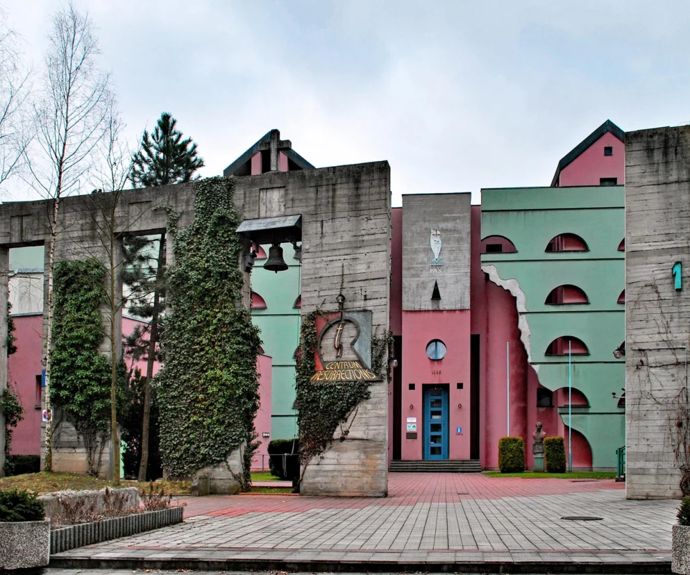 Postmodernizm w architekturze to odwrót od tradycji modernizmu i funkcjonalistycznej urbanistyki, pastiszowe wykorzystanie cytatów z architektury historycznej i współczesnej, kontrast materiałów, kolorów i kształtów. Prezentowany zespół został uznany w 2006 roku za jedną z 20 ikon rodzimej architektury współczesnej w ramach organizowanej przez „A-m” dla MSZ wystawy „Polska. Ikony architektury”