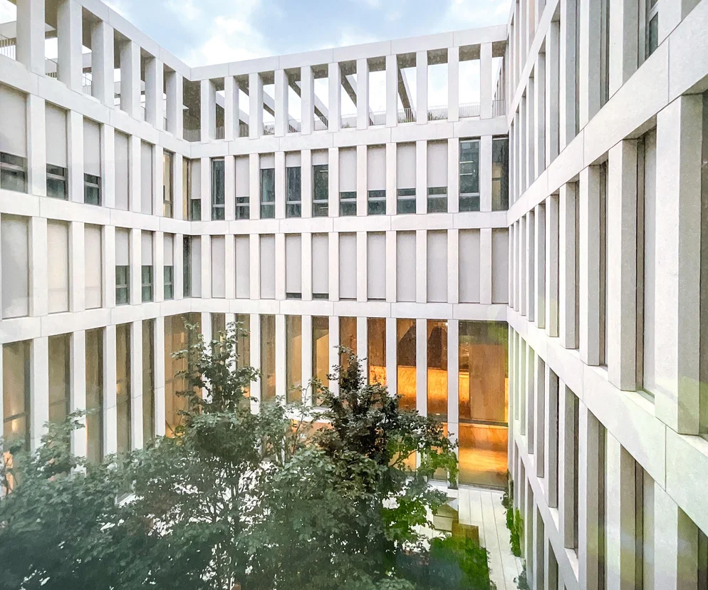 Dziedziniec jest jednym z atriów wyciętych w prostopadłościanie gmachu