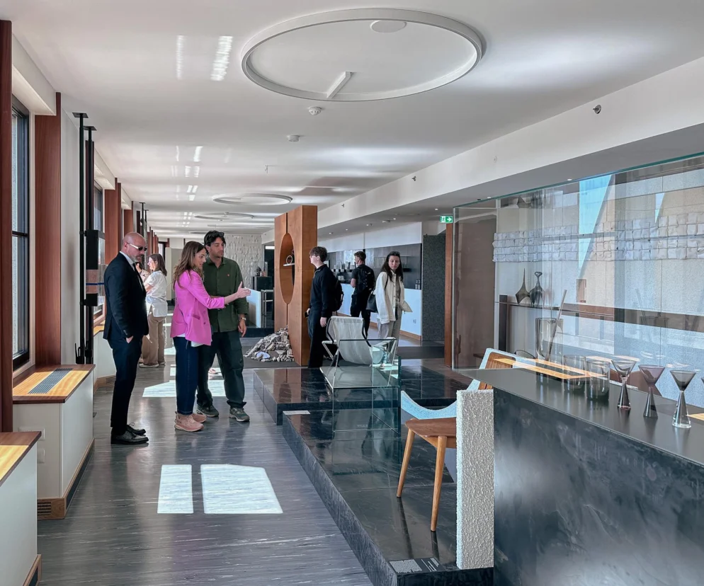 Zwiedzanie rozpocząłem od Zalszupina. Jego prace zajmują połowę dostępnej przestrzeni. Stolik Pétalas, sofa Presidencial czy fotel Cubo nie wyglądały we wnętrzach Torre Velasca jak eksponaty. Z pewnością mogłyby stać się częścią codziennego wystroju tego miejsca. Mógłbym nawet zaryzykować tezę, że prezentowały się lepiej niż podczas ekspozycji w Willi Gawrońskich, gdzie jesienią 2025 roku ta wystawa była prezentowana po raz pierwszy. Być może to także efekt mediolańskiego kontekstu. Całe dwa poprzednie dni spędziłem bowiem na wędrówkach po halach Salone del Mobile. Jestem przekonany, że przynajmniej część z prezentowanych tutaj mebli świetnie odnalazłaby się na stoiskach najbardziej prestiżowych marek. Mimo upływu kilku dekad prace Zalszupina i związana z nimi opowieść o modernizmie jako doświadczeniu migracji, transferu idei i ich twórczej reinterpretacji w innym kontekście kulturowym i materiałowym z pewnością byłyby inspirującym i wciąż żywym wątkiem w kluczowej dla targów rozmowie o pięknie.